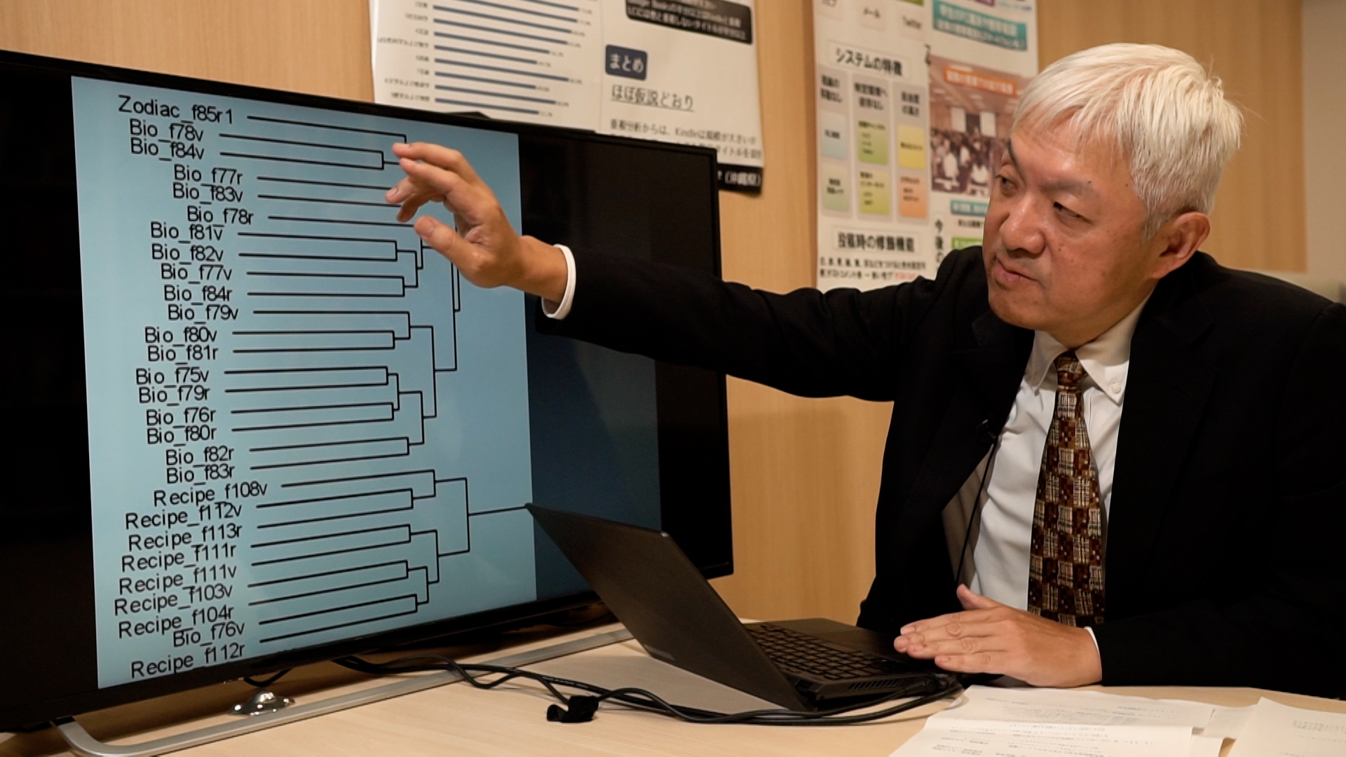文章がデタラメがどうかを判定する方法を編み出したのは、亜細亜大学の安形輝さん。安形さんはデータサイエンスの専門家で、その手法を使ってヴォイニッチ写本の文章を分析した。
