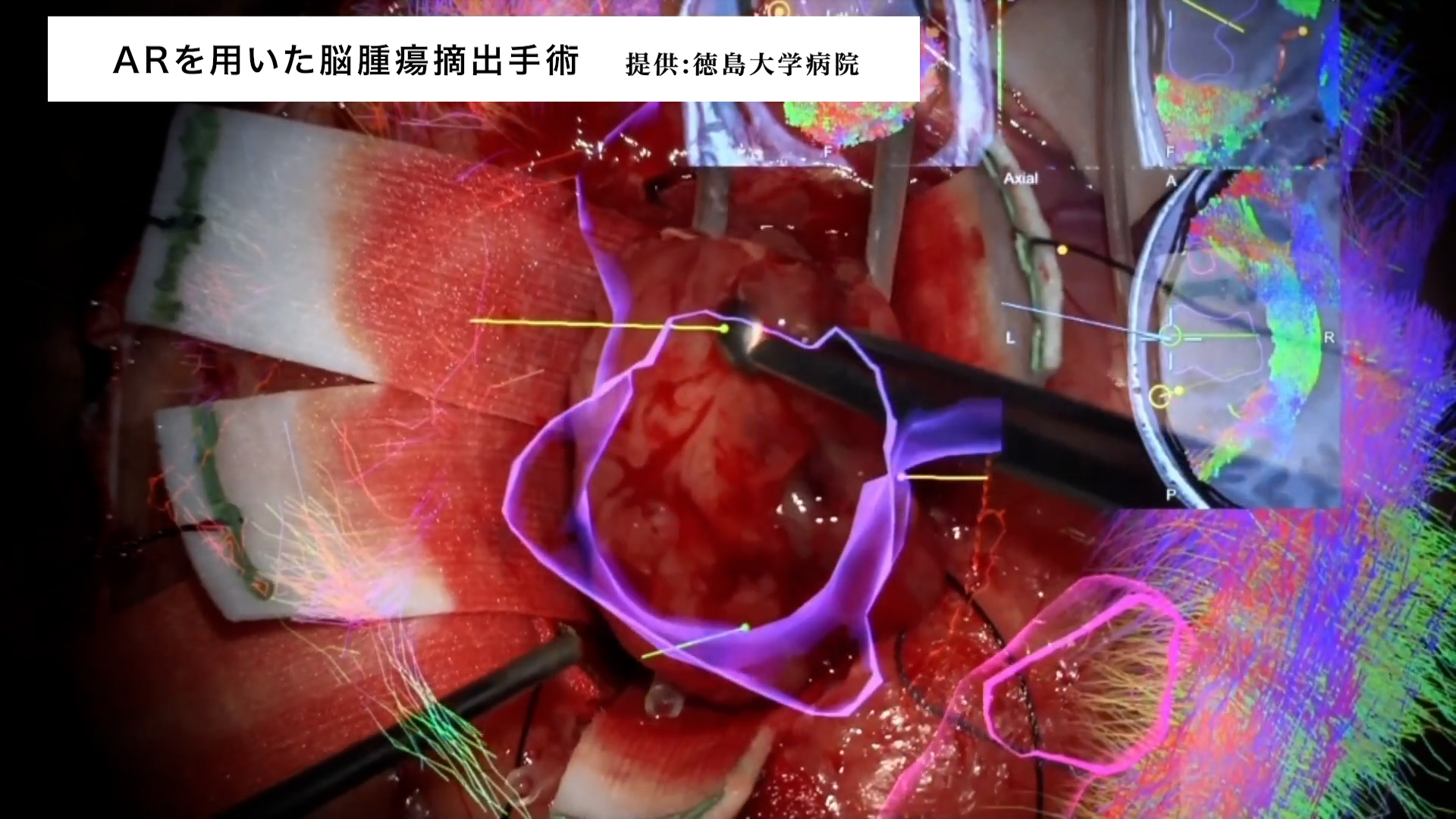 徳島大学病院では、非常に難しい外科手術にARが活用されている。命の危機にも関わる“脳腫瘍の摘出手術”では、肉眼による確認だけでは正常な脳と腫瘍の区別がつかないケースがあり、手術の難易度が高まっていた。その手術をアシストする技術としてARが活用されているという。