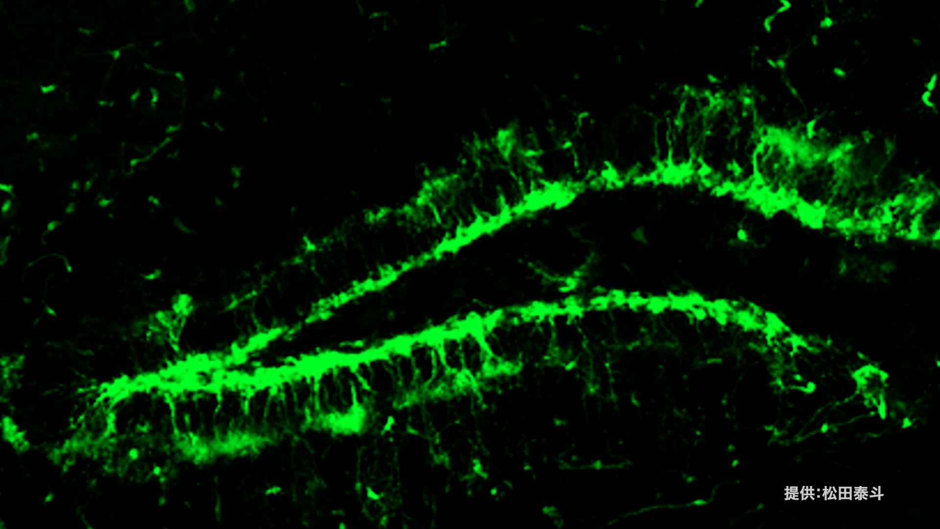 松田さんによると、理論的に若返りの薬の実現は可能だという。そんな松田さんが研究するのは脳の老化だ。脳に存在する海馬には、多くの神経細胞が存在し、この神経細胞が私たちの学習や記憶といった機能を支えている。つまり海馬が老化してしまうと、学習や記憶などの機能低下、そして認知症などの疾患にもつながることがあるのだ。そんな海馬の老化の鍵を握る存在が、神経幹細胞と呼ばれる細胞だった。